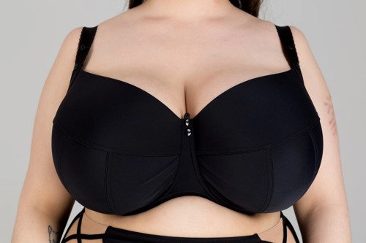 The bra is layered with knitwear, additionally it features intriguing black spaghetti straps on decolette, with sliders making it easy to adjust their lenght to each bust individually. These straps are fully detachable!