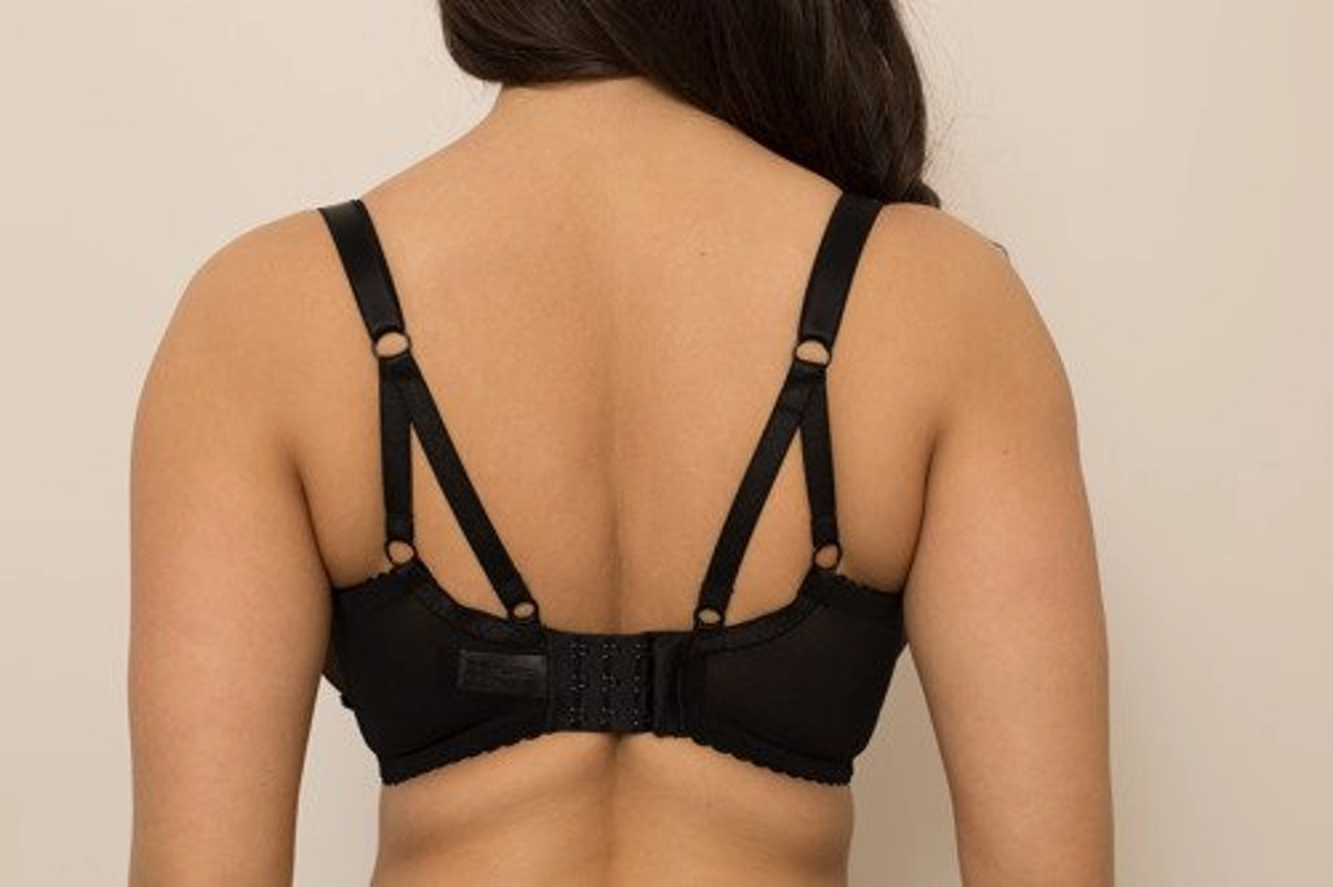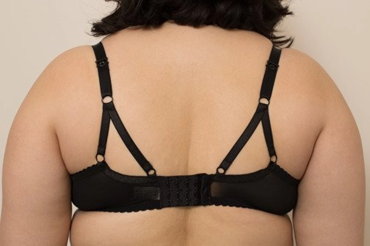 The bra gathers the bust in a way it does not stand out of the contour of the body.