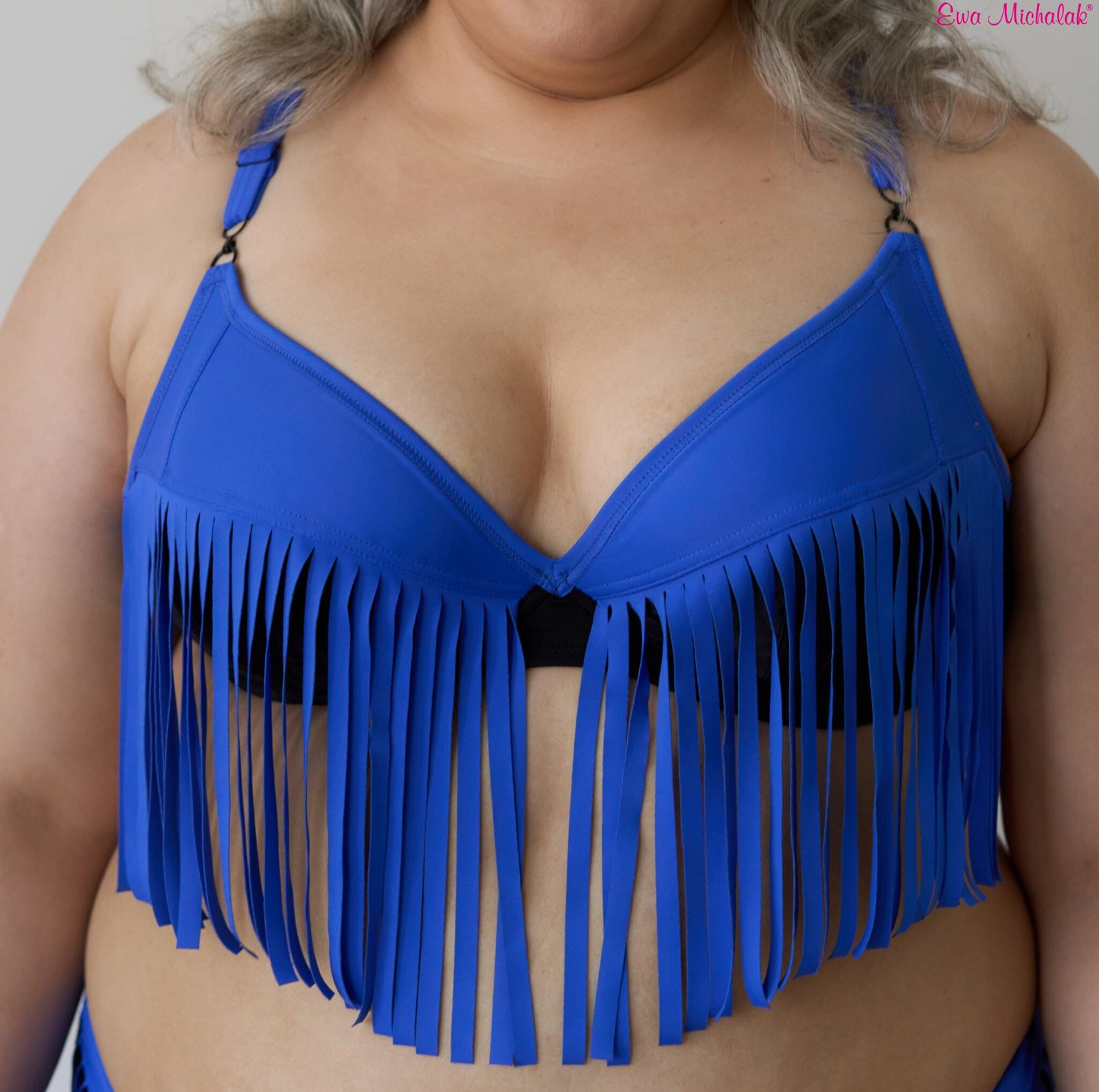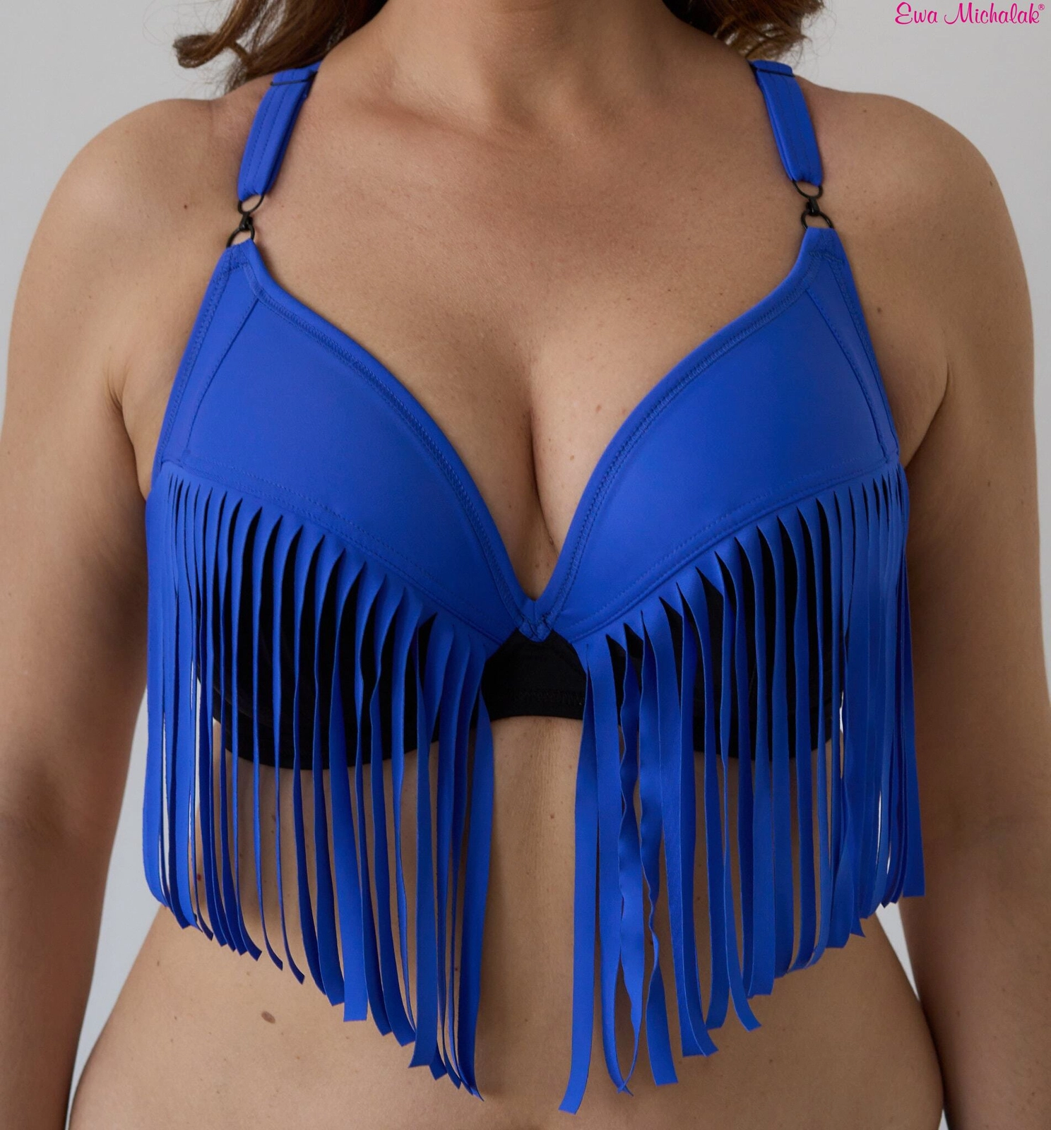 A swimsuit bra with a low bridge and the option of crisscrossing the straps. The model goes perfectly with high briefs or Brazilian V briefs, and the fringes create the illusion of a one-piece swimsuit - all in the style of Ewa Michalak: functional, sexy and classy. We definitely recommend wearing crisscrossed straps! ATTENTION! Not recommended for asymmetry
