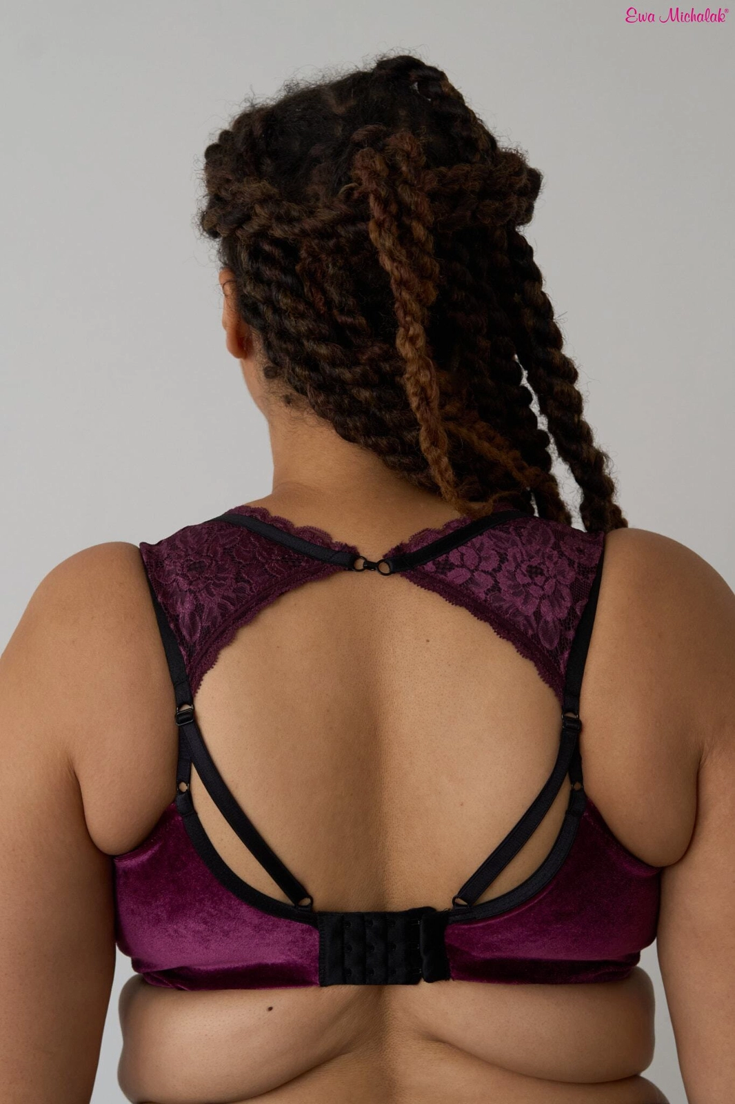 The bra features cups with more coverage, going round the breasts keeping a tight reign on them.