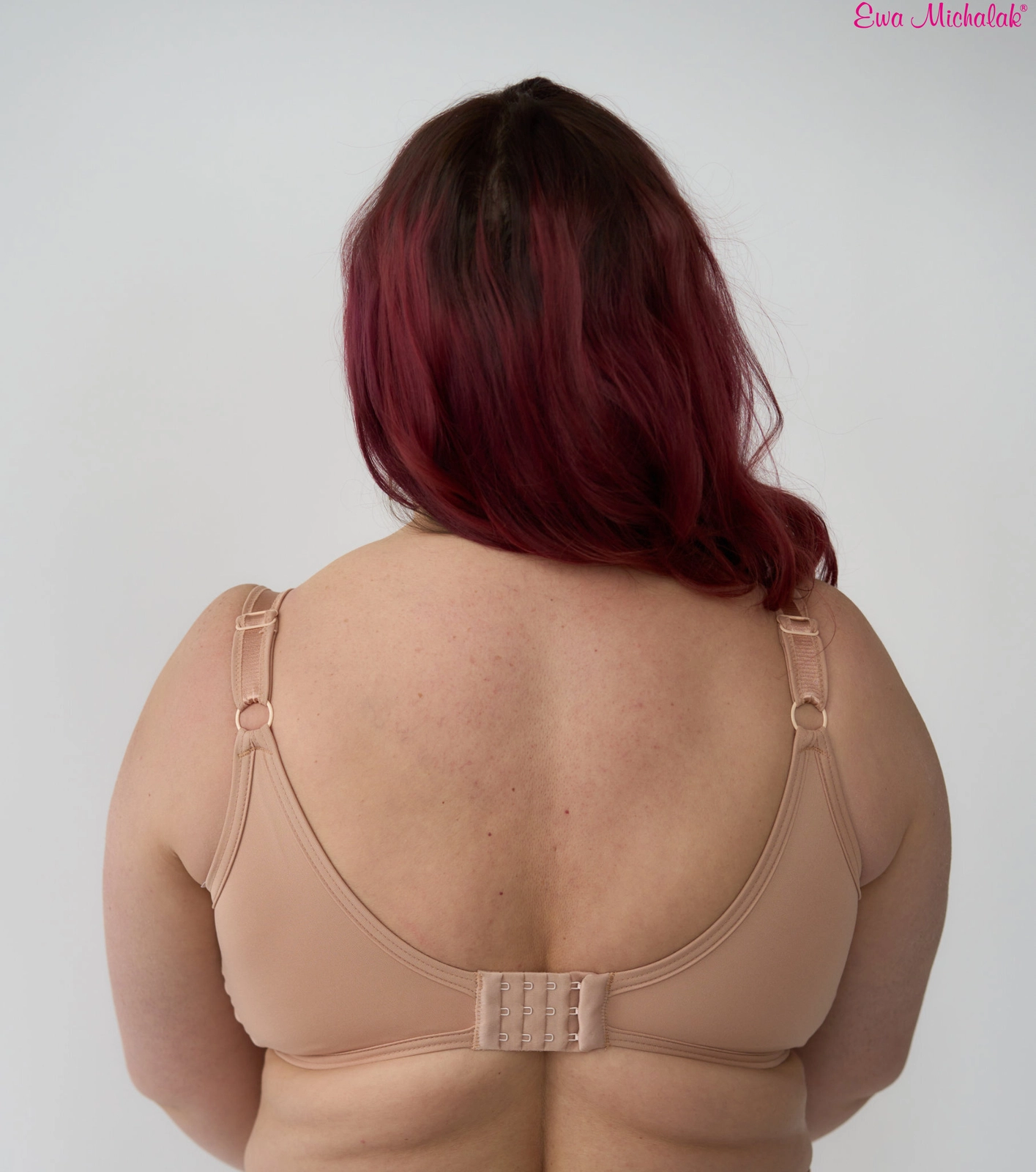 Miękki Top Bez Fiszbin: Ciesz się luksusowym komfortem topu bez fiszbin, zapinanego z gracją z przodu na czarne plastikowe zapięcia typu klik.